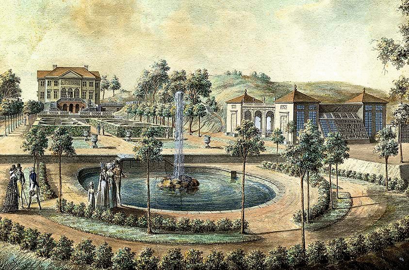 Hall beauftragte den damaligen Stararchitekten Carl Wilhelm Carlberg, das Hauptgebäude samt Inneneinrichtung und Gärtenkonzeption zu entwerfen. Carlberg, gerade erst von einer inspirativen Europareise und mit vielen neuen Ideen zurück nach Göteborg gekehrt, fertigte um die 200 Skizzen an.