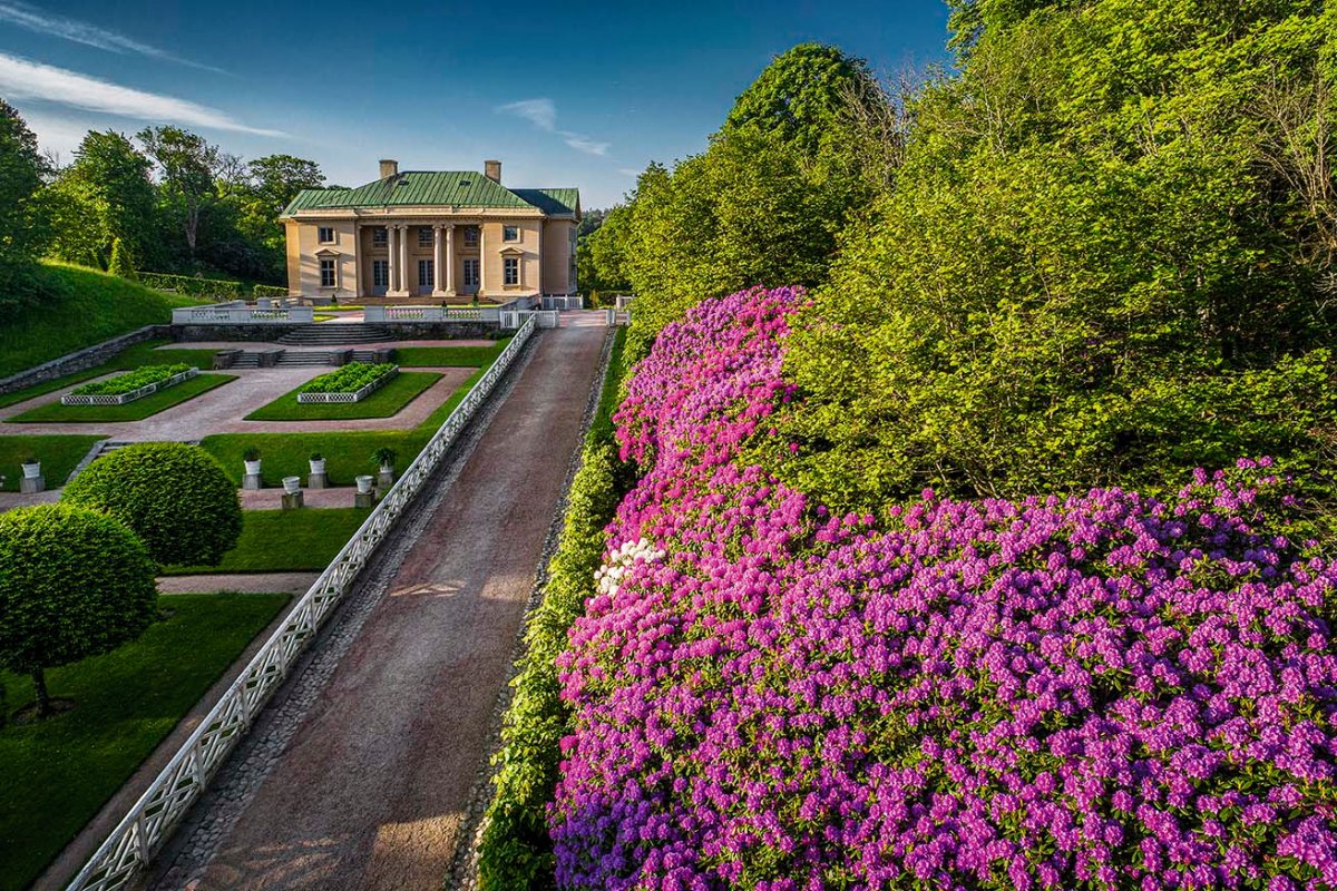 John Hall war ein reicher Mann. Und geschäftig. So kam es, dass sich der Kaufmann aus Göteborg nach einem Sommerhaus umsah. 1778 wurde er fündig. Ungefähr zehn Kilometer südöstlich vom Stadtkern erwarb er das Grundstück des heutigen Schlosses Gunnebo, wunderschön auf einem Hügel zwischen zwei Seen platziert.